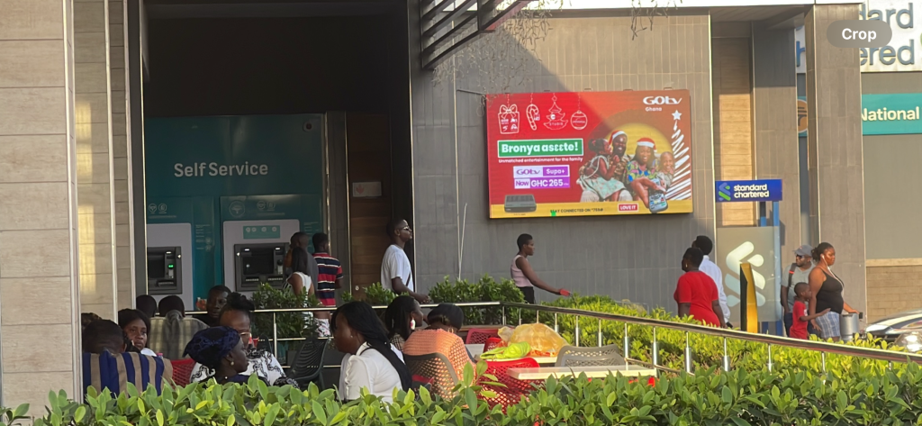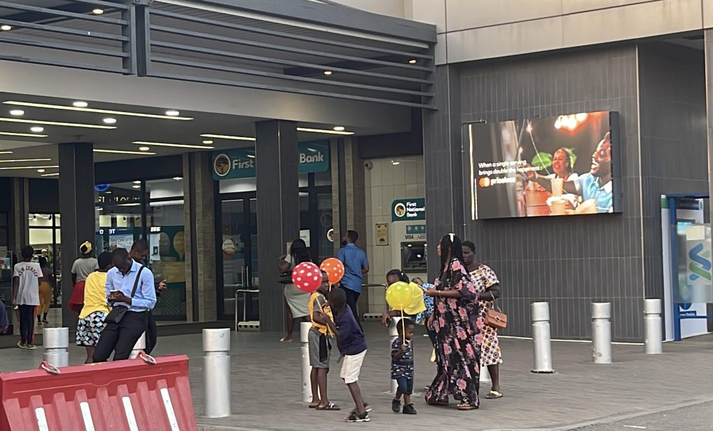 Great LED screens well positioned at the forecourt of the Mall. The screens drive impactive response to pedestrians causing them to recall brand as they walk into the mall for purchase. Salience at it best